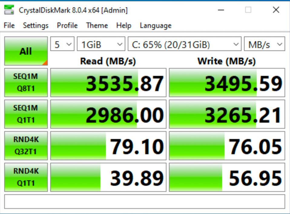 Testing performed using Qcow2 disk format, Windows 10 Pro Guest OS, and a Samsung 990 Pro SSD. For additional performance-tuning advice, see the article Improving the performance of a Windows Guest on KVM/QEMU.