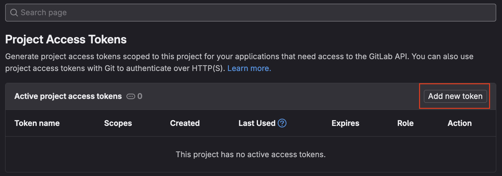 1. Select the Access Tokens menu