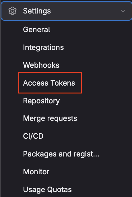 1. From the main page of your Gitlab repository, select the Settings option from the menu on the left.