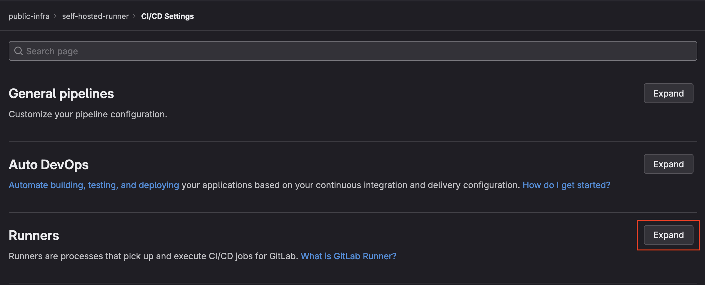 1. Find the Runners section and click the expand button