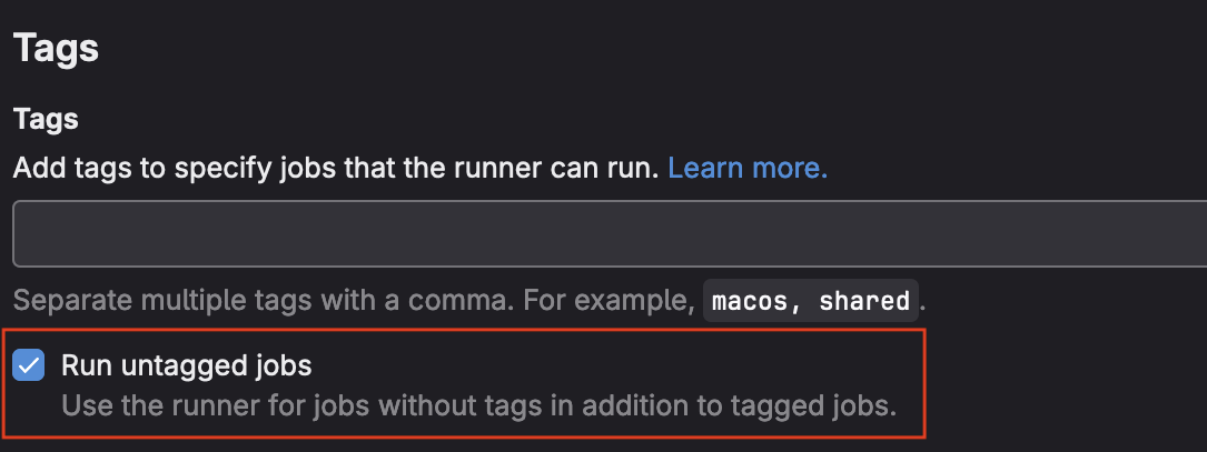 1. Optionally, check the Run untagged jobs box if you would liek your runner to be the default for all jobs.